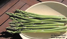 Einfach ausgedrückt: weißer Spargel wächst unter der Erde und wird gestochen, sobald sein „Kopf“ das Licht erblickt, Grünspargel wird dagegen nicht angehäufelt und wächst bereits in der Sonne. Dadurch bildet der grüne Spargel die Stoffe, die er zur Photosynthese benötigt – und das macht ihn grün. Theoretisch können Sie aus Bleichspargel Grünspargel machen, indem Sie keine Spargeldämme anhäufen. Jedoch gibt es inzwischen auch spezielle Grünspargel- und Bleichspargel-Sorten, die speziell für den Grün- bzw. Bleichspargelanbau gezüchtet wurden.